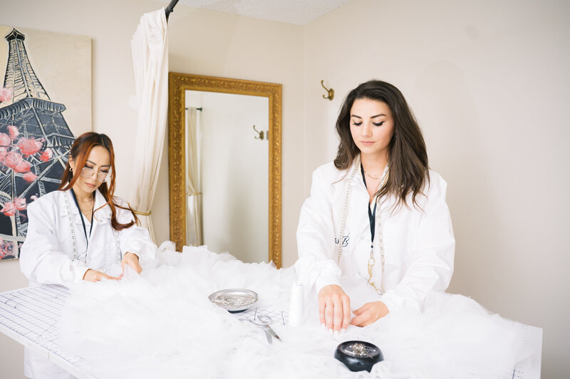 Through our custom design process, we’ll explore your personal style, draw inspiration from gowns you love, and review fabric and trim options. From there, we’ll create a series of sketches tailored to bring your vision to life in a way that’s uniquely yours and truly special.
